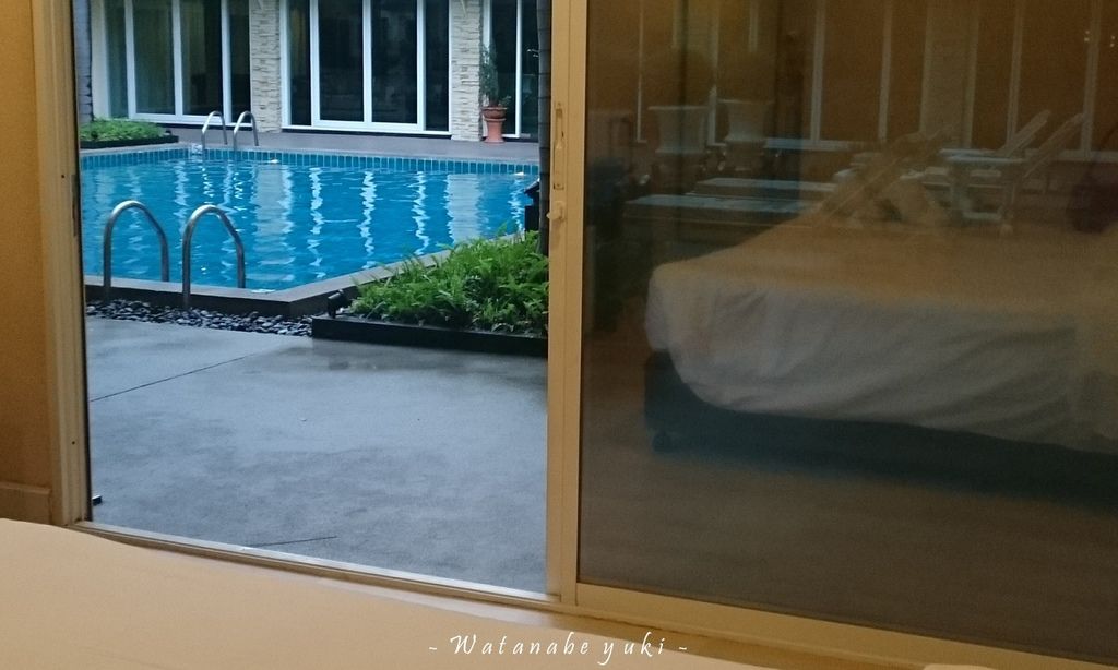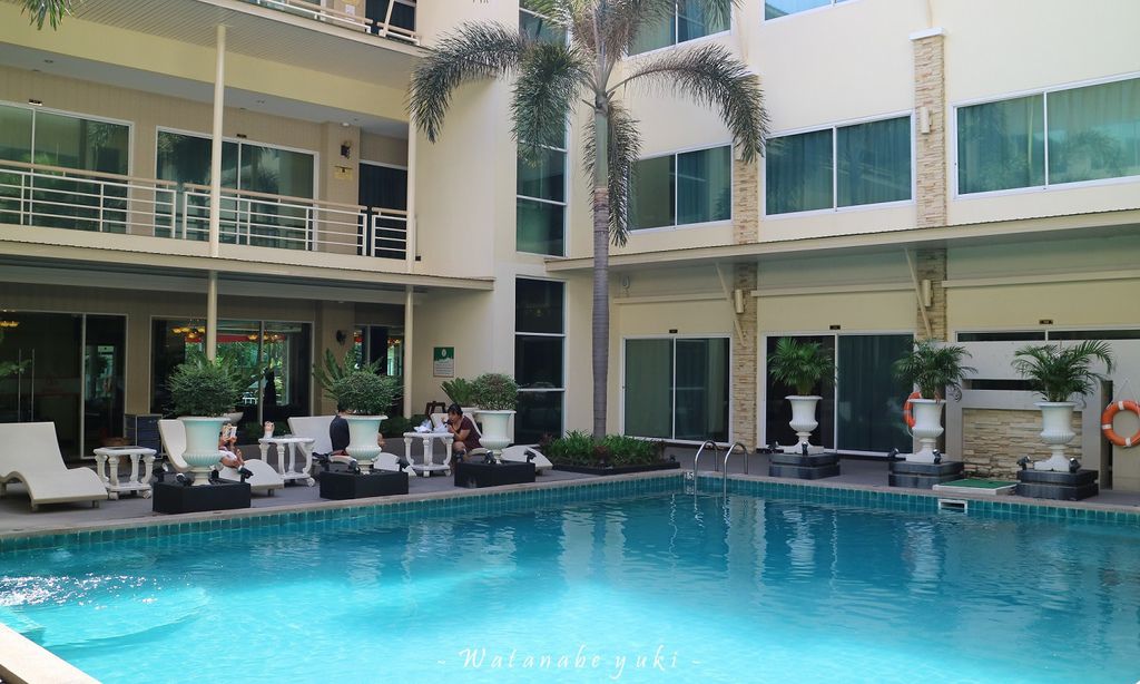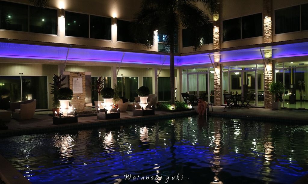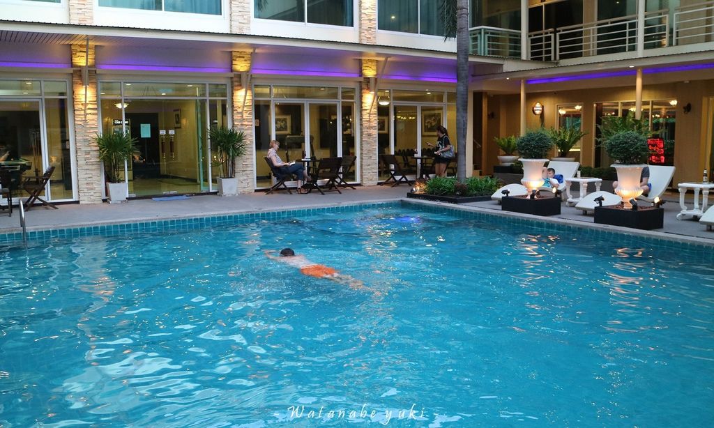 飯店中庭泳池,沒事做可以在泳池邊喝啤酒看書划手機、放空(橘褲蛙人-aniki)