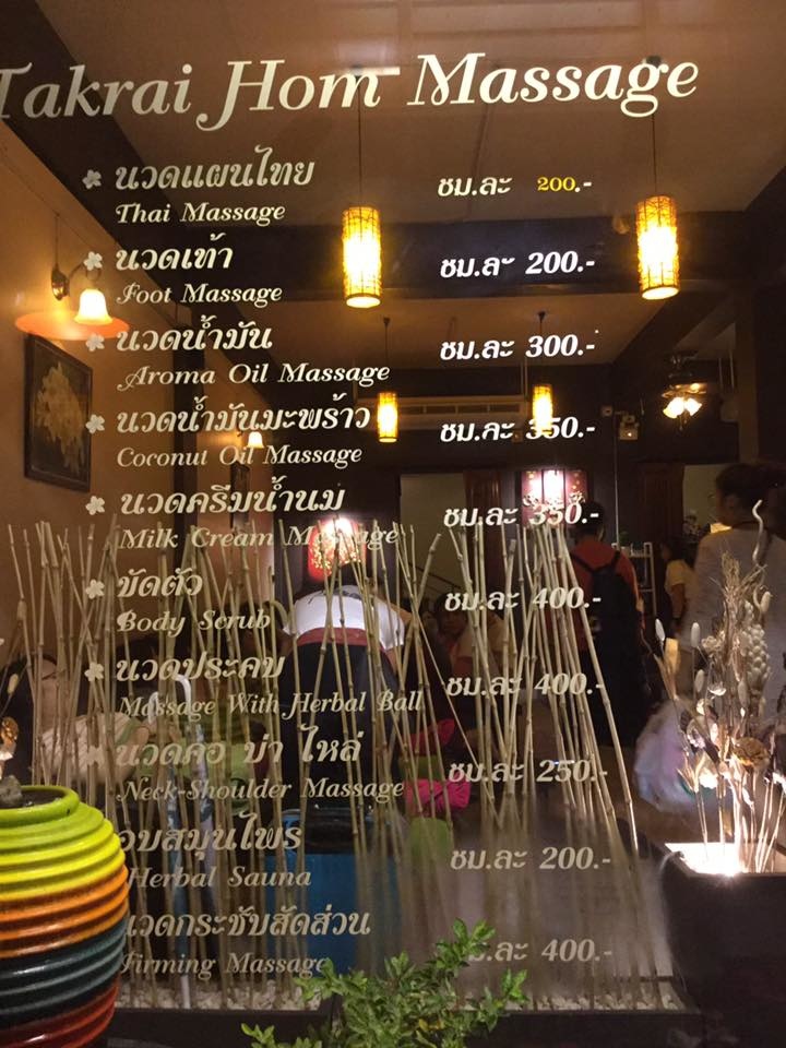 泰式按摩 一小時200銖。(2017年起漲價,之前泰式按摩才150銖)